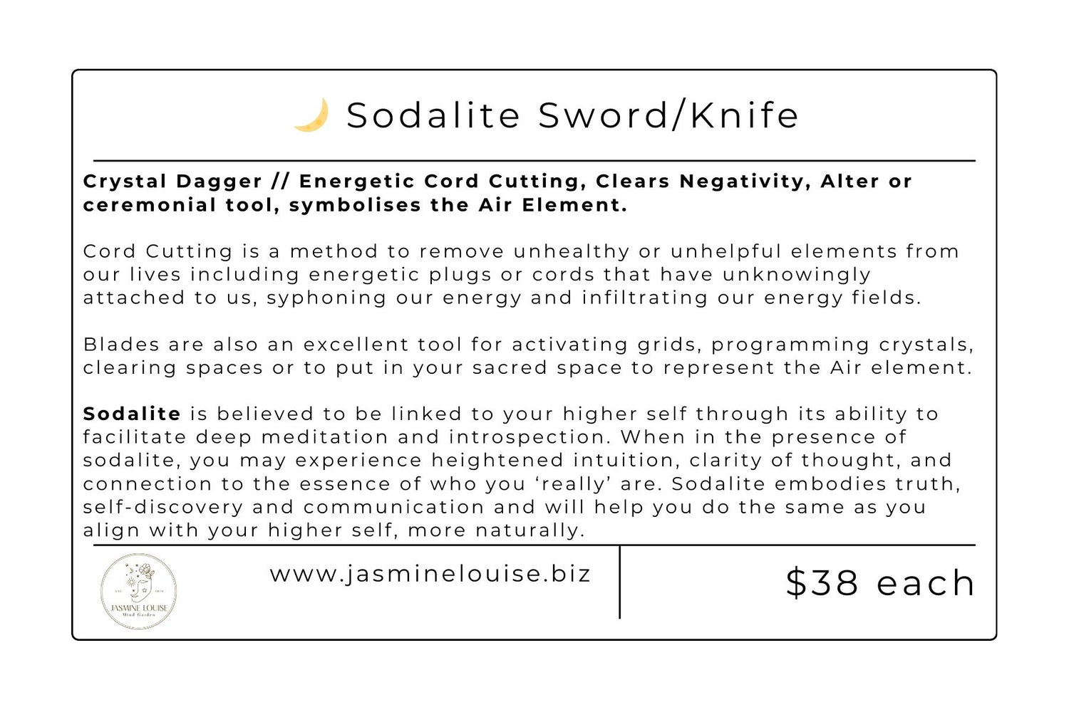 You will receive one intuitively selected Sodalite Dagger along with information paper as pictured. Comes in a giftbox along with an intuitively pulled oracle card as part of the surprise.