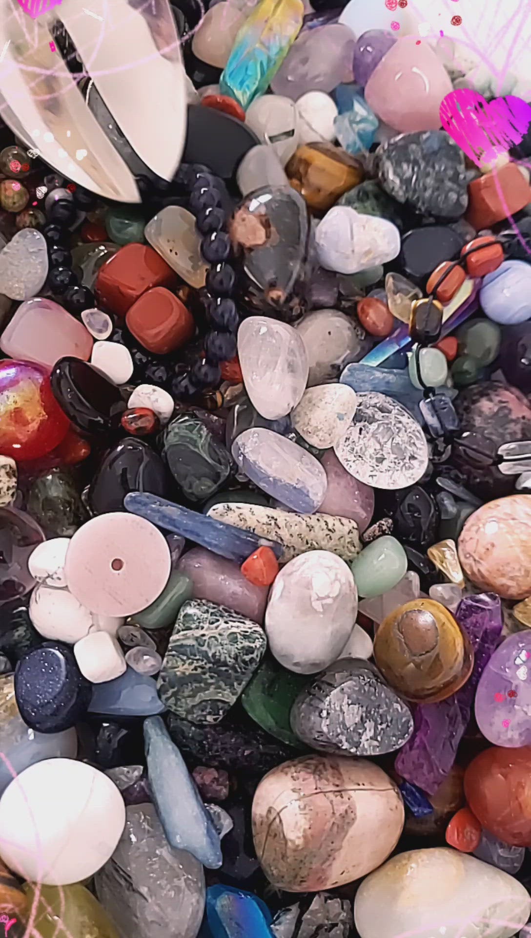 There is a mix of all size crystal tumbles, shards, chips, small carvings, palm stones, spheres, pendants etc so no two scoops are ever the same.