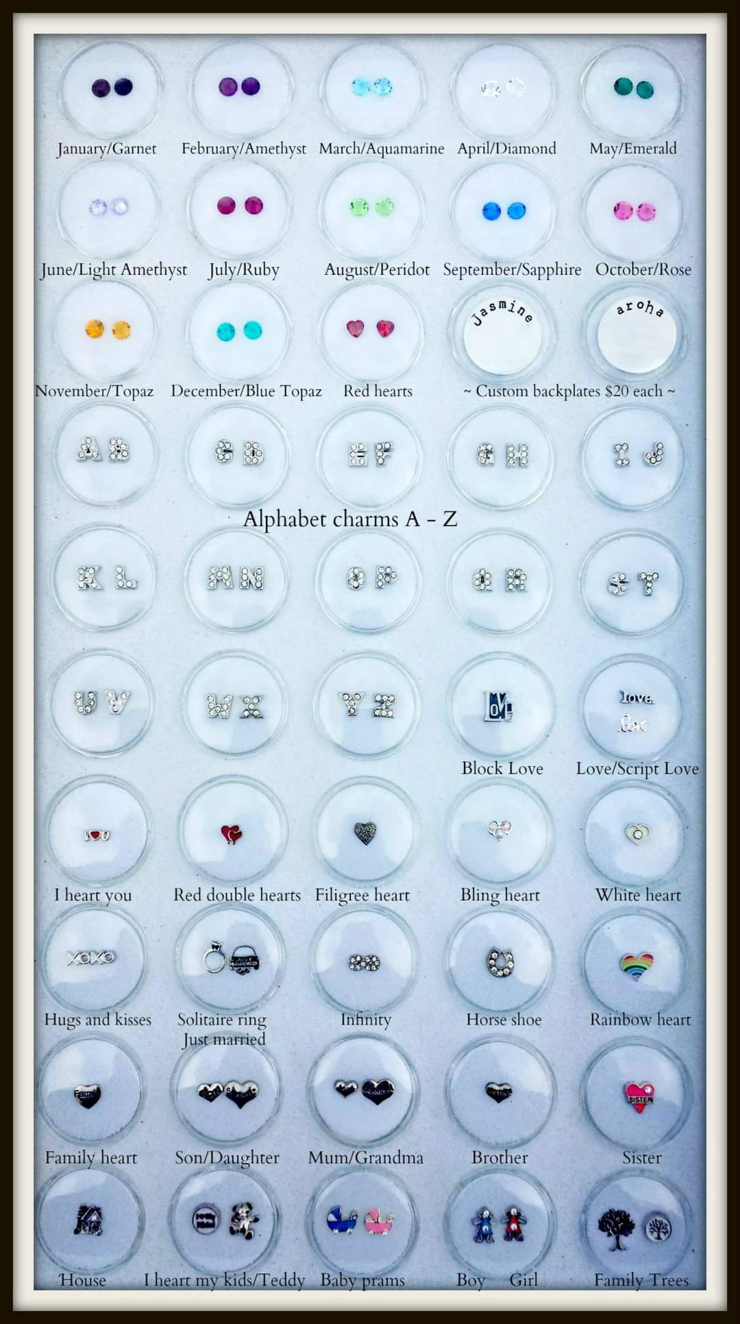 Note: Mini paua shells are not pictured but are also available as a charm option. Just let us know in the text box when typing your charm/birthstone crystal choices