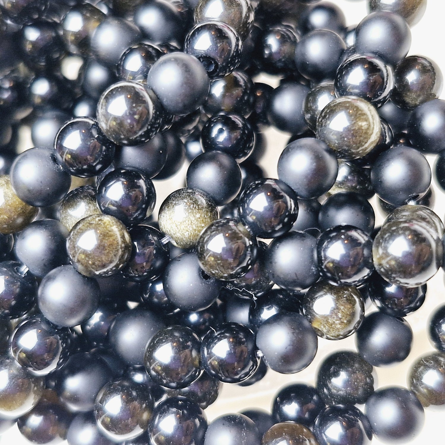 A mix of Golden Sheen Obsidian and black tourmaline 6mm beads, make these hearty little double protection bracelets.